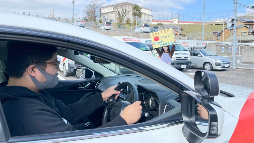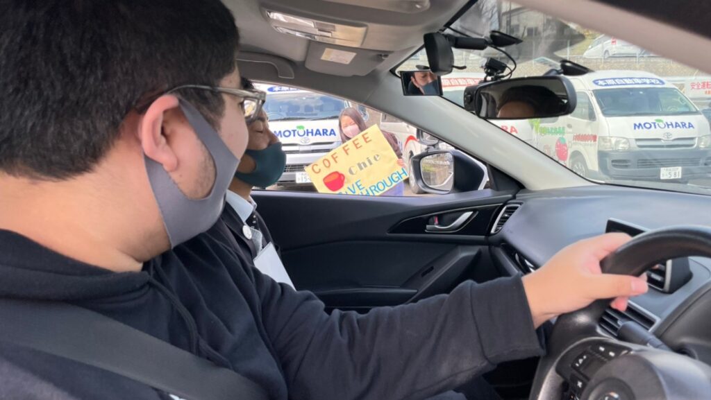 MAIさん、おーちゃん、教官を乗せた車がいよいよ発進!