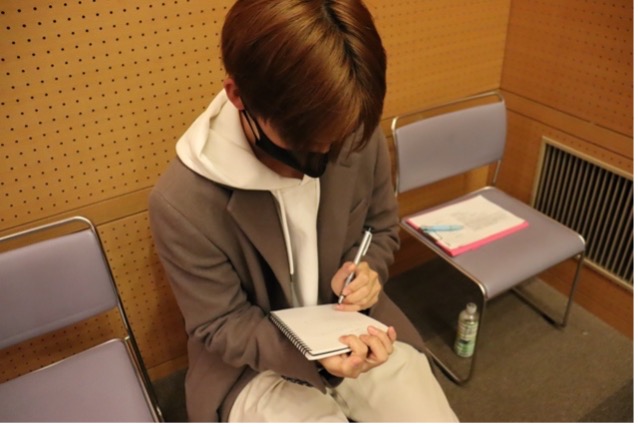 資料?譜面の事ですか?譜面は持って来てないです!譜面はなくてもマイクから伝わるように感情を込めて表現するので大丈夫です!!