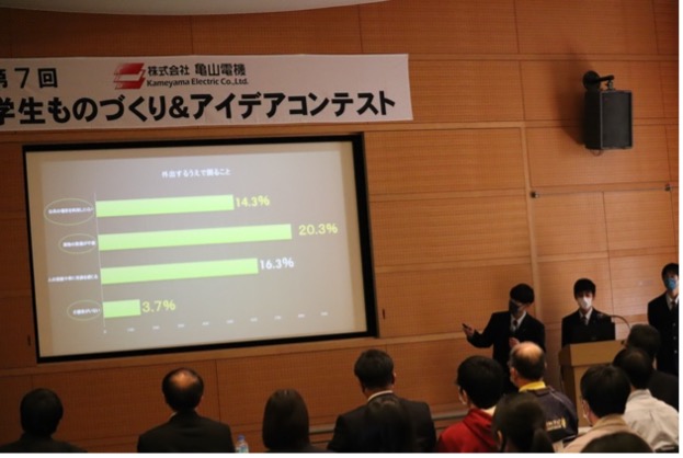 今年度で亀山電機が26期になるんですけれども、このコンテストを開催することで会社として地域貢献や青少年育成に貢献できるのではと思い、はじめました。今回で7回目を迎えることができました。