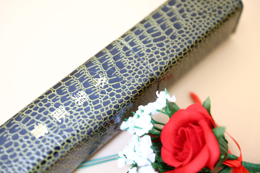 昭和初期に男性のおしゃれアイテムとしてワニ革が流行り、小林さんも「これを筒にしたらオシャレなのではないか?」ということで賞状筒にも採用したそうです。
