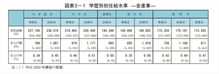 ニュース 21年卒初任給の引き上げ額は全学歴で前年比減 – 学歴別の平均額は?