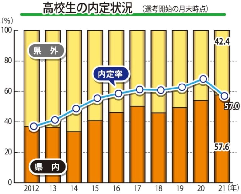 ニュース 長崎県内高校生の就職内定 過去最高 9月末、57.6%