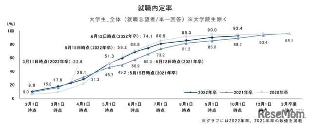 ニュース 就職内定率、10/1時点で92.4%…コロナ禍以前と同水準
