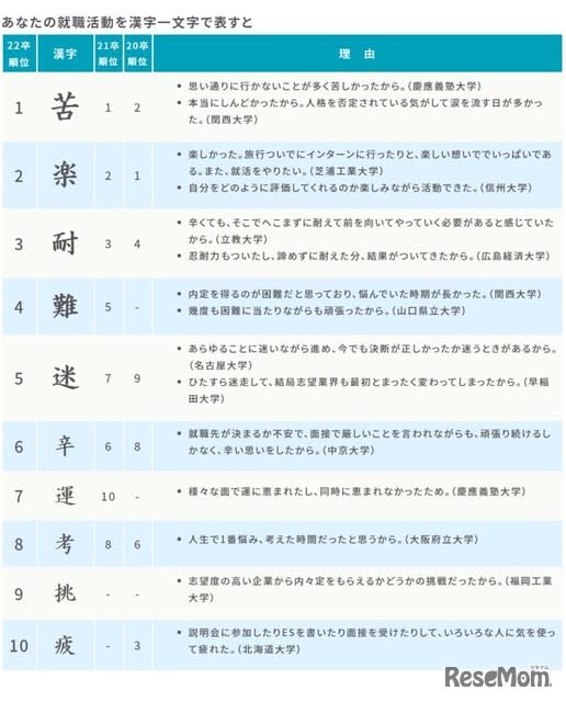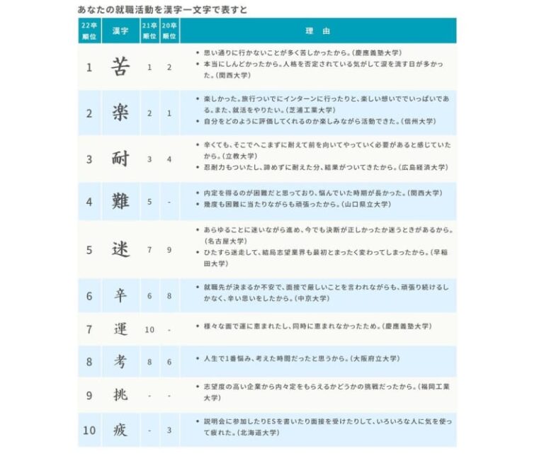 ニュース 2022年卒学生の就職活動を表す漢字、2年連続1位は「苦」
