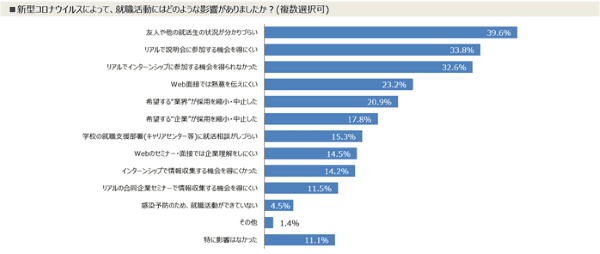 ニュース 新型コロナの就活への影響、「友人や他の就活生の状況がわかりづらい」が最多に【学情…