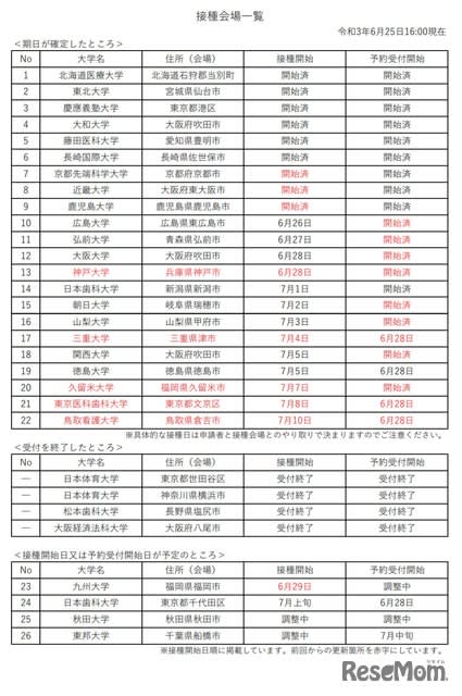 ニュース 文科省、留学予定者に対するワクチン接種会場一覧を公開