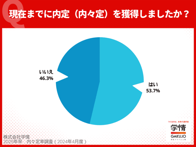 ニュース 25年卒学生の3月末時点での内々定率は53.7%、内定(内々定)を獲得し就活を終…