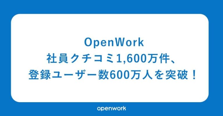 ニュース 社員クチコミ1,600万件、登録ユーザー数600万人を突破!