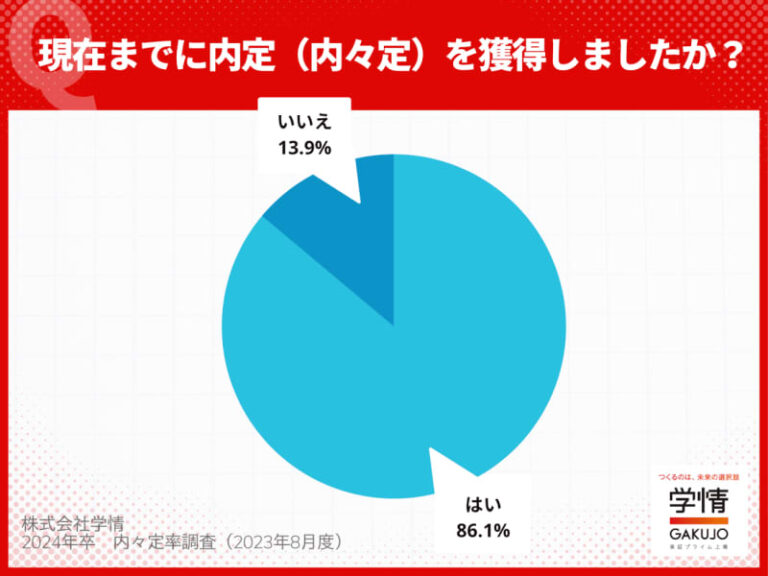 ニュース 24年卒学生の7月末時点での内々定率は86.1%、すでに67.4%が就活を終了【…