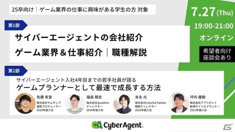 ニュース サイバーエージェントが25年卒のゲーム業界への志望学生に向けたオンラインセミナー…
