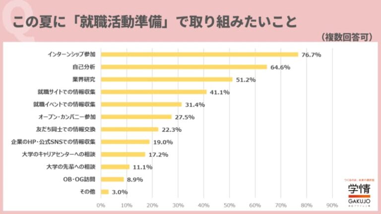 ニュース 25年卒学生、この夏休みに就活準備で取り組みたいこと「インターンシップ参加」が最…