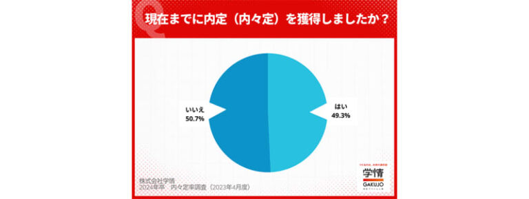 ニュース 24卒学生、3月末時点の内々定率は49.3%──4月を待たずに5割に迫る。早期化…