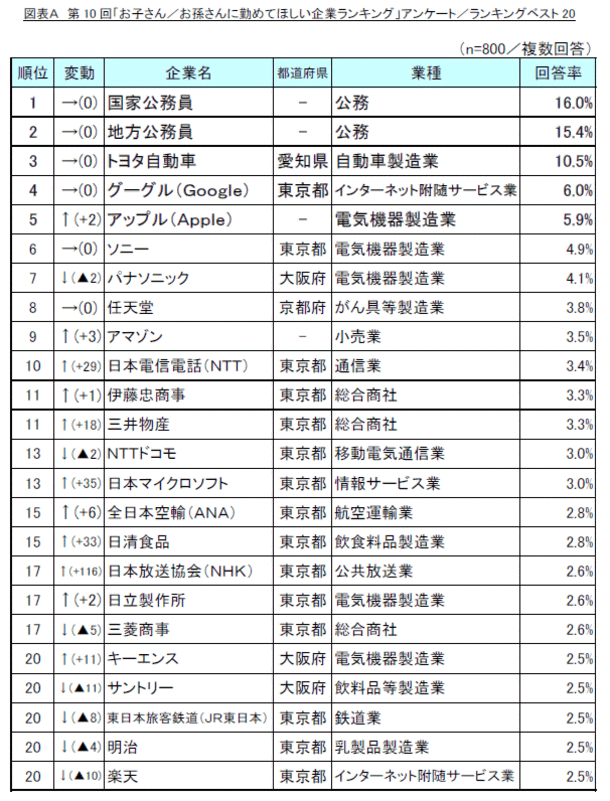 ニュース 第10回「お子さん/お孫さんに勤めてほしい企業」調査 『経営の安定性』に次ぐポイ…