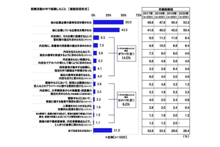 ニュース 内定後に強制、「インターンシップやアルバイト、研修」、約半数。~連合調査