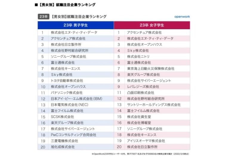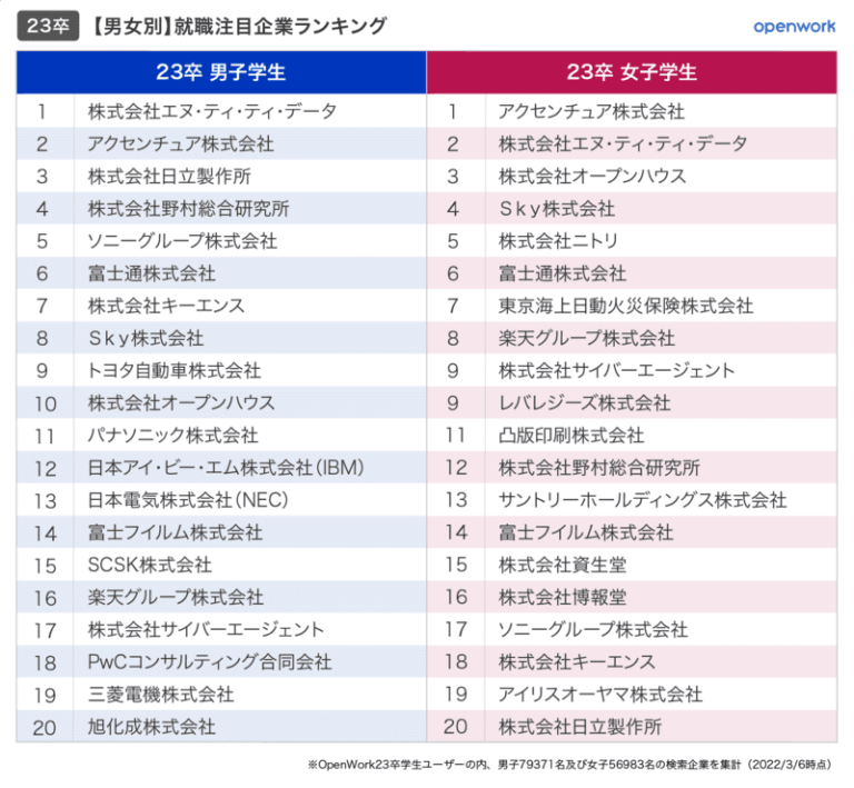 Published by マイナビニュースオープンワークは3月30日、「23卒就活生が選ぶ、就職注目 […] -