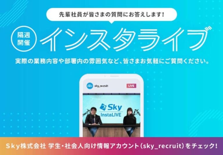 ニュース Sky、学生・社会人向けに先輩社員がInstagramでライブ配信